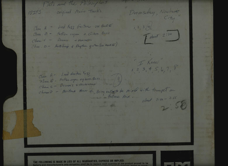 After the Nashville sessions failed to bring success the band began to fall apart. By the end of 1970 Plato and The Philosophers was no more. Ken got married that year, then in June he was drafted into the Army. Five weeks later he was discharged for what the Army termed "physically unfit". The other members left to pursue their own careers. Recently Plato and The Philosophers re-formed and released a cd of new music. Here then, is their first album of old material combined with some other bands from the same era of sound.