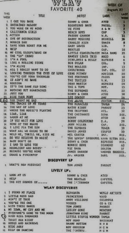 figured out how to pay for our expenses. On October 3, 1965, “You Treated Me